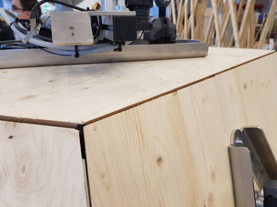 Im «Immersive Design Lab», einem Labor für erweiterte Realität auf dem Campus Hönggerberg, konnten die Forschenden die Entwürfe dreidimensional erkunden und in Echtzeit gemeinsam daran weiterarbeiten. Eine gemeinsam mit dem Computational Robotics Lab der ETH entwickelte Software ermöglicht es ihnen zudem, die Entwürfe der Holzschalen einfach anzupassen: Verschieben die Wissenschaftlerinnen und Wissenschaftler beispielsweise einen einzelnen Punkt innerhalb der Geometrie einer der Schale, die sich aus rund 70 Holzplatten zusammensetzen, passt die Software die gesamte Geometrie an. Gleichzeitig berücksichtigt sie die relevanten Fertigungsparameter, wie beispielsweise das maximal mögliche Gewicht einer Platte, und generiert so stets die effizienteste und belastbarste Konfiguration.