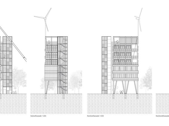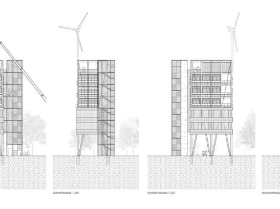 Im Rahmen des Ideenwettbewerbs wurden Möglichkeiten zur Umsetzung des «CircularTower» generiert. Die Wettbewerbsjury fokussierte bei der Prämierung des Siegerprojekts auf eine nachhaltige Bauweise, den Einsatz erneuerbarer und klimaneutraler Materialien, die Verwendung recycelter Bauteile und die Wiederverwendbarkeit der neuen Bauteile.