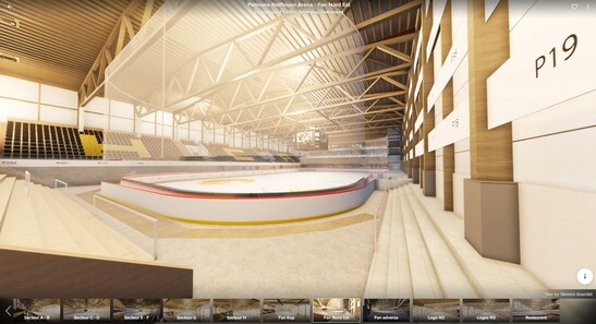 Mehr zum neuen Eisstadion erfahren Sie auf unserer Webseite oder im 20 Minuten. Für eine virtuelle Führung durch das Stadion, klicken Sie auf das Bild.