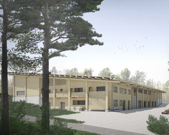 Der neue Forstwerkhof umfasst ein zweigeschossiges Betriebsgebäude in Holzbauweise und eine Einstellhalle für Maschinen, Geräte und Fahrzeuge. Über 95 % des Materials stammen aus stadteigenen Wäldern. Dabei wurde auf minimale Bearbeitung geachtet: Die Tragkonstruktion der Halle besteht aus Rundholz, das direkt aus dem Wald eingebaut wurde. Das übrige Fichten- und Tannenholz wurde in einer nahegelegenen Sägerei sowie bei regionalen Verarbeitern zu Brettern, Balken und Leimholz verarbeitet und kehrt schrittweise auf die Baustelle zurück. Kurze Transportwege machen den Neubau besonders energieeffizient und CO₂-speichernd; die Beheizung erfolgt mit stadteigenem Stückholz.