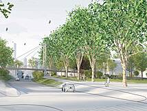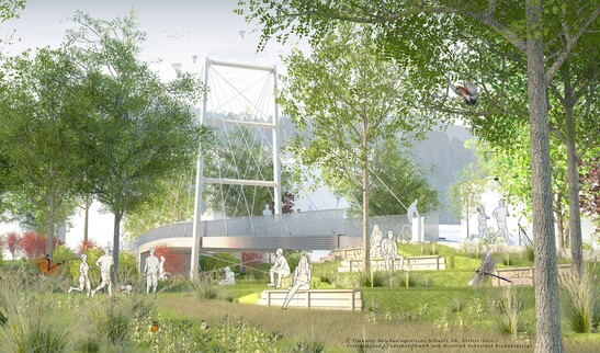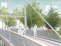 Den innovativen und umfassenden Ansatz, den Steg nicht nur als reines Bauwerk, sondern als Schlüssel zur Schaffung eines neuen Lebensraums zu betrachten überzeugte die Jury. Architektonisch wird der Hängeseilsteg mit Pylon und Abspannungen ein starkes Zeichen im Zentrum von Spreitenbach setzen.