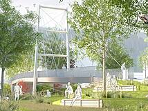Der neue Boostocksteg soll die trennende Bahnhofstrasse überqueren und wird als Tor zum Park konzipiert. Die Planung umfasst einen grsszügigen Park mit vielfältigen Freizeitmöglichkeiten, Spielflächen, Erholungsbereichen und naturnahen Lebensräumen. Dieser Park dient nicht nur der Bevölkerung als Treffpunkt und Erholungsraum, sondern trägt auch zur ökologischen Vernetzung, Biodiversität und dem nachhaltigen Wasserhaushalt bei.