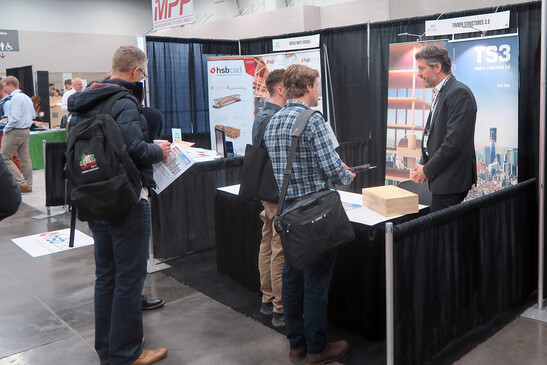 Le point culminant du voyage en Amérique du Nord a été l'International MassTimber Conference, l'un des événements les plus importants de l'industrie du bois. secteur du bois dans le monde entier. Sur le stand de TS3, les Suisses ont mené de nombreux entretiens. avec des représentants de la branche venus du monde entier. Et avec son exposé lors de la conférence Stefan Zöllig a pu présenter la technologie TS3 à un large public.