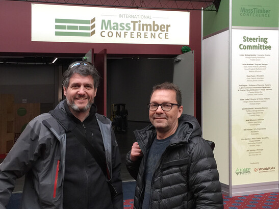 Pendant près de trois semaines, Stefan Zöllig et Marcel Herzog de TS3 ont voyagé en Amérique du Nord. Ils ont pu présenter leur nouvelle technologie à un public international de spécialistes lors de plusieurs réunions ainsi que par leur exposé à la MassTimber Conference à Portland.