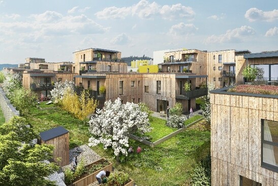 La ville de Vienne s'agrandit - et avec elle, la possibilité de créer de nouveaux concepts de vie. possibilité de repenser les concepts de vie. Sur le Rosenhügel, un contrefort de la de la forêt viennoise dans le 12e arrondissement de Vienne, le premier quartier résidentiel dans un jardin sauvage. Sur environ 11 hectares, 2'300 personnes vivront en harmonie avec la nature. vivent en voisinage avec la nature, mais aussi en ville. La participation fait partie du projet depuis le début. dès le début du concept de développement, qui associe la vie dans des maisons à deux logements à des immeubles à plusieurs étages. des immeubles d'habitation de plusieurs étages. D'ici 2023, le Wildgarten verra la construction de environ 1'100 unités d'habitation par des promoteurs immobiliers et des communautés de construction privées, financés librement et en partie subventionnés.