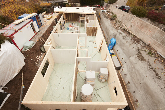Les sous-sols en bois sont plus écologiques, plus rapides à construire et offrent une atmosphère plus agréable. Le premier sous-sol en bois de Suisse a été inauguré et certifié dans le cadre d'un ArchitektTOUR : Le bois utilisé provient de Suisse et permet de stocker un total de 222 tonnes de CO₂.