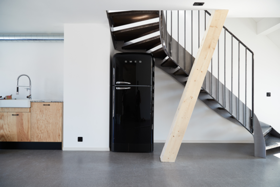 La structure porteuse est habilement utilisée comme élément d'aménagement à l'intérieur de l'appartement.