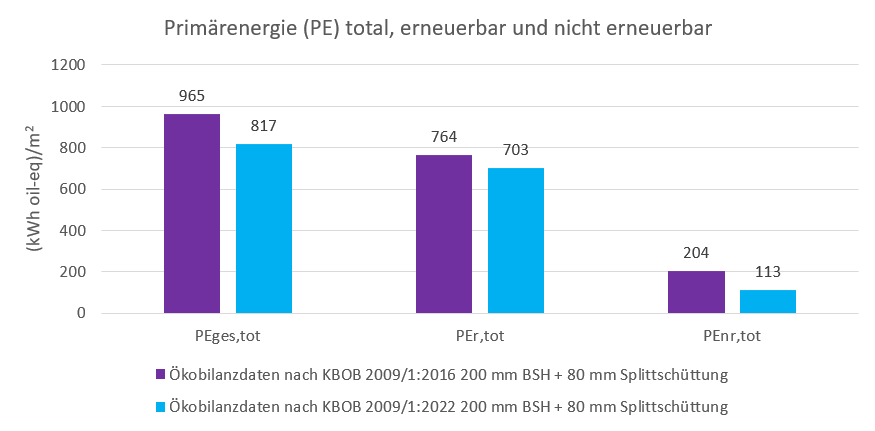 Des corrections ont été apportées dans différents domaines ont eu lieu afin de rapprocher les valeurs théoriques de la réalité. Le bois lamellé-collé et les autres produits en bois sont environ 25% mieux placés dans les critères mentionnés. mieux que dans les données précédentes. D'un autre côté, les produits de construction Les produits en béton sont aujourd'hui classés de manière nettement plus nocive pour l'environnement.