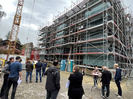 La visite de ce projet immobilier passionnant a eu lieu le jeudi 19 octobre 2023. Le nouvel immeuble «Scherli», construit en bois durable et selon les normes Minergie-P, convainc tant par son esthétique que par sa fonctionnalité.