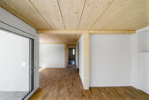 La planification du projet était un petit planning familial du collaborateur de Timbatec. L'architecte responsable et l'ingénieur civil sont les frères et sœurs d'un collaborateur. Le bâtiment est construit en bois à partir de la dalle de sol. Les planchers en bois massif reposent sur les axes porteurs intérieurs et les murs extérieurs. Les balcons en porte-à-faux ont tous été réalisés sans pilier. Toutes les poutres et les poteaux, ainsi que les plafonds, sont apparents et ont été traités avec une protection contre les UV avec une légère teinte blanche. Timbatec était responsable de l'ensemble de la statique de la construction en bois, de la planification détaillée et de la planification de la protection incendie, y compris l'assurance qualité.