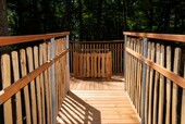 Le sentier des cimes est conçu comme une construction en bois filigrane à partir de troncs d'épicéas régionaux non traités. Les plateformes en CLT qui le recouvrent sont placées avec précision autour des arbres et protégées par un revêtement en caoutchouc. Des fentes de décharge et des renforts transversaux dans les troncs ronds garantissent que les fissures de séchage n'apparaissent qu'aux endroits souhaités.