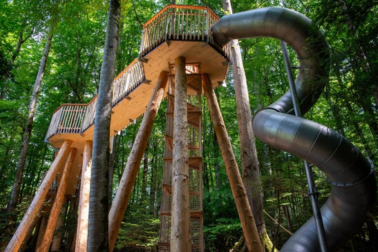 Près de l'auberge « Alter Bären » du musée en plein air de Ballenberg, un nouveau sentier dans les cimes des arbres a été créé comme attraction estivale pour les familles. Long d'environ 25 mètres, ce sentier traverse la forêt à une hauteur vertigineuse et se termine par un toboggan de près de huit mètres de long. L'offre est complétée par un espace de bricolage pour les circuits à billes et des stations ludiques d'apprentissage sur le thème de la forêt. L'installation allie découverte de la nature, connaissances et activité physique. Réalisé dans le cadre d'un projet régional de construction en bois avec des troncs d'épicéa naturels et des plateformes en CLT, le sentier est synonyme d'architecture durable et d'expérience communautaire.