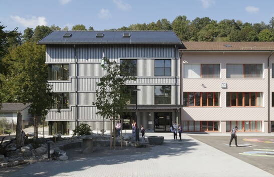 La commune de Meinisberg rénove son centre : l'école datant des années 50 est agrandie et complétée par une extension en bois. Le nouveau double jardin d'enfants est situé au rez-de-chaussée et s'ouvre sur l'aire de jeux située sur l'ancienne place provisoire. En même temps, une maison communale distincte est construite en face de la cour de récréation, ce qui donne au village une adresse claire et s'intègre dans l'environnement grâce à sa forme à un étage. Les nouveaux locaux sont flexibles, accessibles aux personnes à mobilité réduite et adaptés à l'enseignement actuel. Il en résulte un ensemble harmonieux qui offre à l'école et à l'administration l'espace nécessaire.