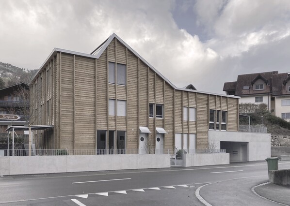 L'immeuble collectif situé au 31 Bergstrasse à Goldau est un nouveau bâtiment de trois étages avec un parking souterrain. Alors que le sous-sol est construit en dur, les étages résidentiels supérieurs sont construits selon une méthode de construction à ossature bois. Les appartements du rez-de-chaussée et de l'étage supérieur disposent d'entrées séparées, ce qui permet de se passer d'une cage d'escalier intérieure.