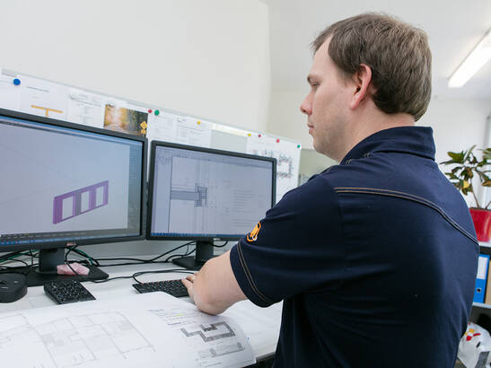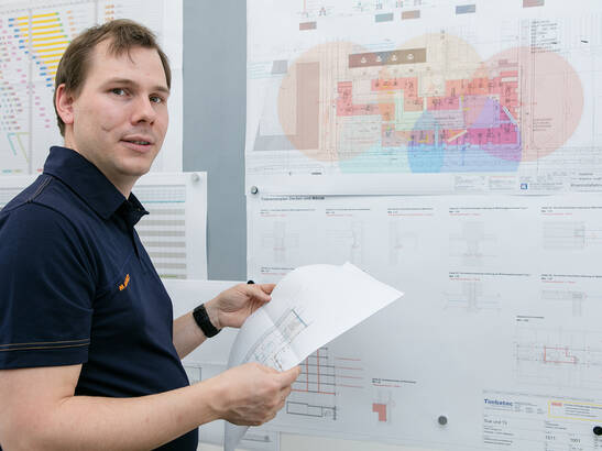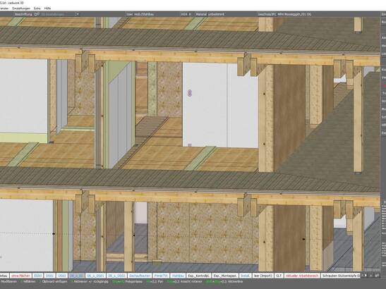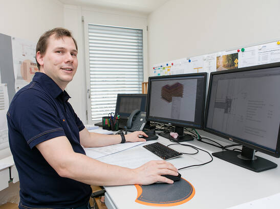 La construction moderne en bois est rapide : les éléments sont préfabriqués au millimètre près et transportés sur le chantier. Les grands bâtiments s'élèvent ainsi en quelques jours. Cela nécessite une planification exacte et sans faille de l'atelier avec des modèles en 3D. Nous sommes le lien entre la planification et la production.