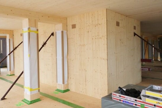 Impressions of the construction phase: The wooden components can be easily prefabricated and assembled. be assembled.