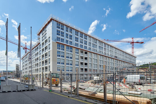 Directly station in Winterthur, urban living and working space is being created for over 1,500 people. people. The Krokodil, the first building block of the Lokstadt development directly next to Winterthur station, was built in record time. In May 2018, the first excavators drove up and dug out excavation - a large hole where the basements for the cellars and underground parking and underground parking garage were concreted.