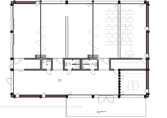 The Leimer Tschanz Architekten AG from Biel planned the 25-meter-long and 18-meter-wide structure. They defined a staircase made of reinforced concrete for access to the upper floors and for bracing the of the building. The staircase was not located in the center of the building, thus enabling spacious rooms. On the first floor, thanks to folding walls that can be opened or that can be opened or closed as needed, a music room is created for up to 100 people. When all folding walls are open, the room is 25 meters long and 10 meters wide. meters wide.