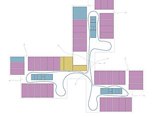 The building followed a cloverleaf-shaped structure that allowed for clear organization: The first floor contained communal areas, a student dormitory as well as a kitchen and laundry. The upper floors each offered three residential units, connected via a central core with elevators and care areas. The rooms were designed for individuality, security and good lighting and offered access to a protected outdoor space.