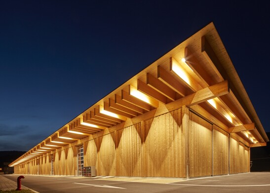 The workshop was built as a wooden structure in accordance with the energy-saving Minergie-P-Eco standard. Practically only wood from Switzerland was used.