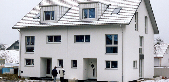 The entire building was constructed using the board stack method. Exterior walls, interior walls, building partition walls, but also ceilings and roofs including hatches were built in this construction method. Attention was paid to the building partition wall. In order to meet the high sound insulation requirements, it was designed as a double-shell construction.