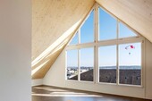 It was a challenge to find a suitable bracing system, as the floor plan is very compact in relation to the height and the walls are correspondingly short. This was solved with cross-laminated timber walls, which were braced with threaded rods.